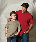 preshrunk 50% cotton/50% polyester jersey • 5.6-oz. • double-needle cover-stitched seamless 1x1 ribbed collar • shoulder-to-shoulder taping • double-needle sleeve and bottom hems • Sizes: S-3XL, selected colors up to 4XL